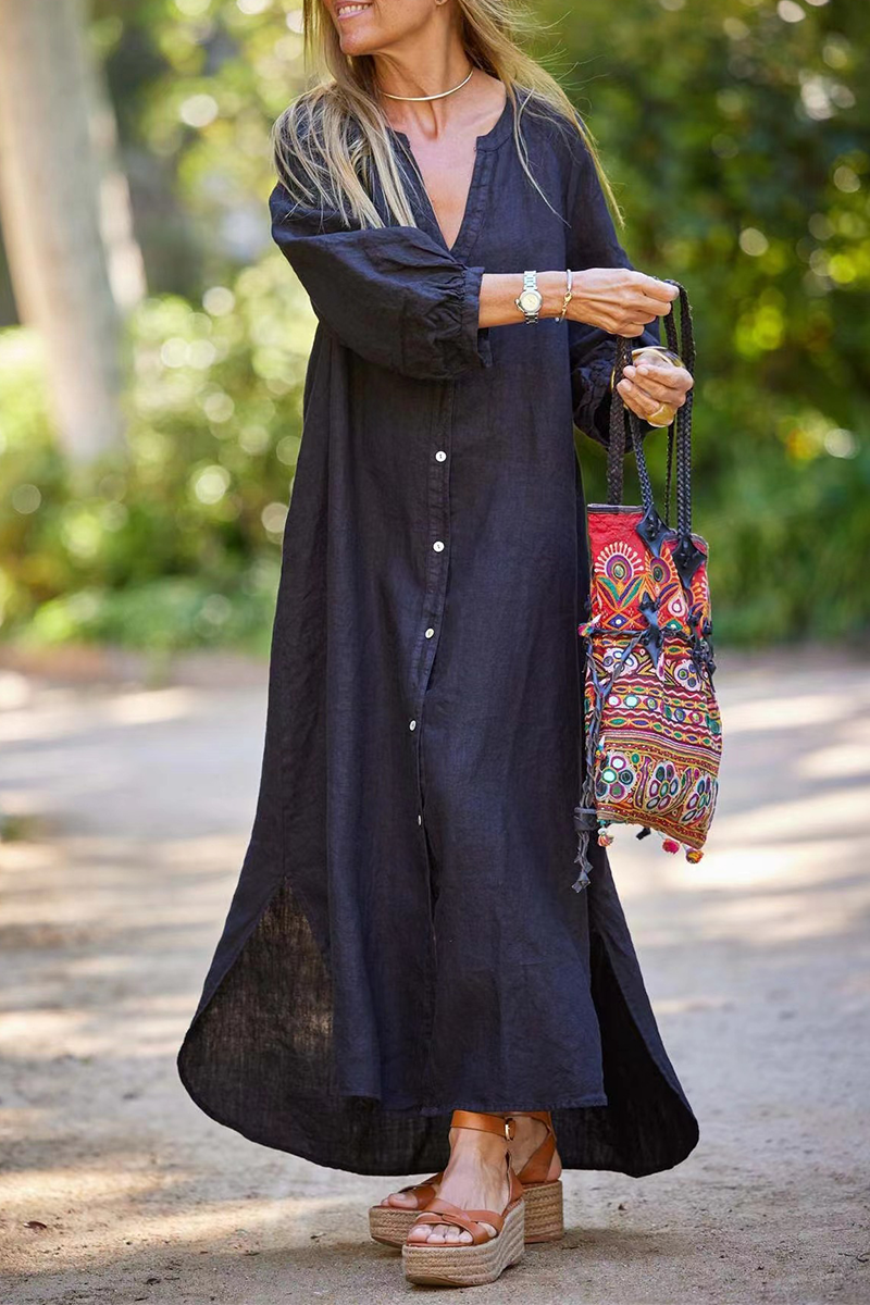 Casual Street Solid Color Buckle V Neck Long Sleeve Dresses(3 Colors)
