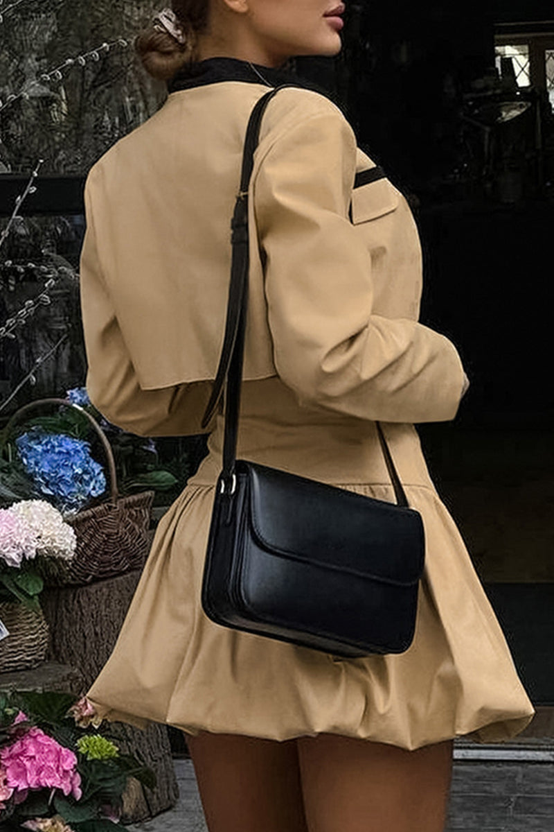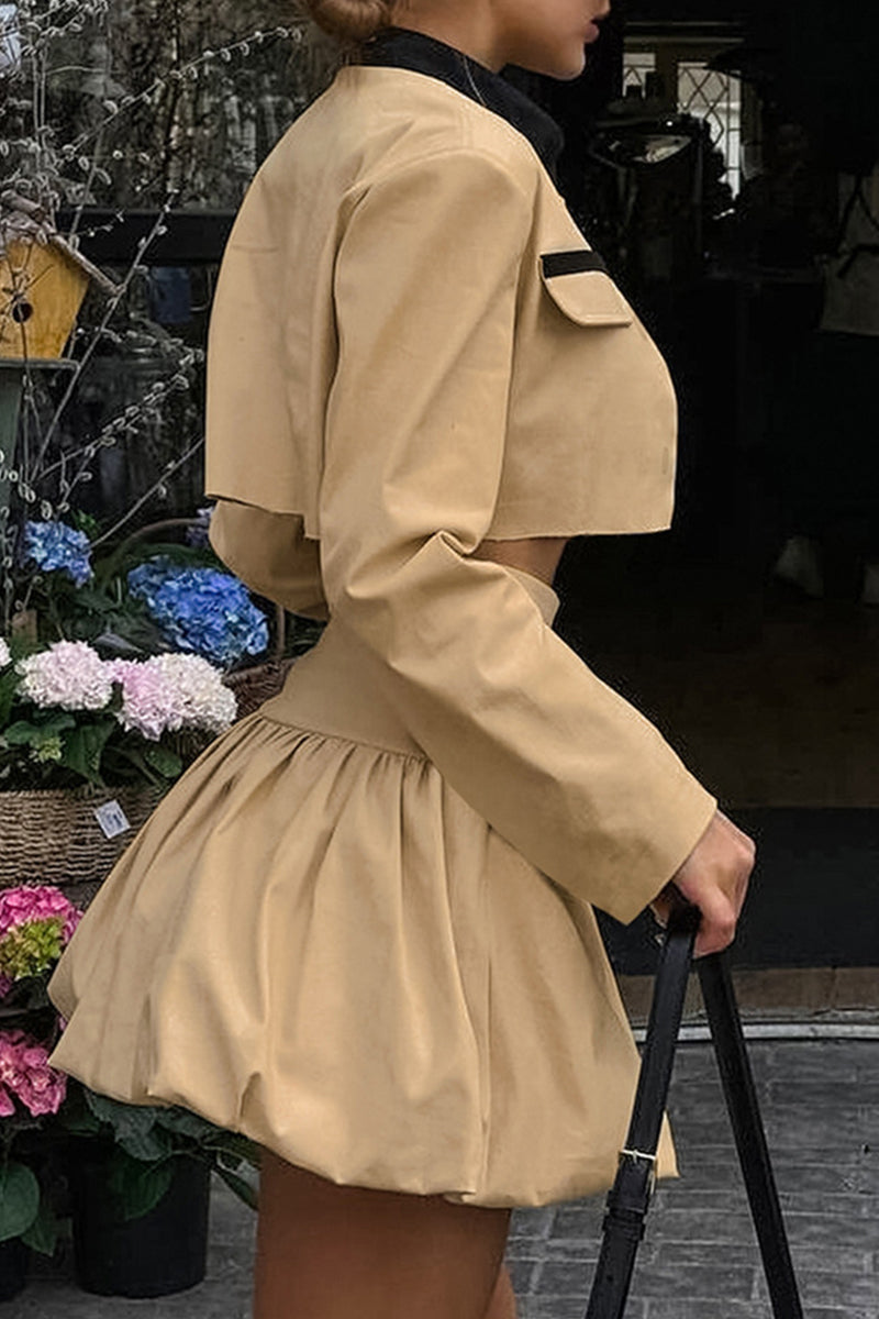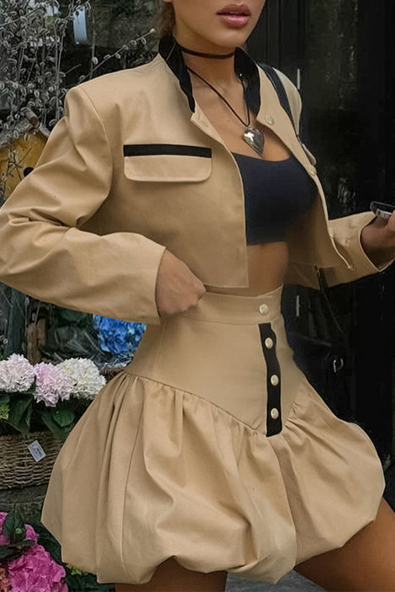 Casual Street Solid Color Buttons Patchwork Contrast O Neck Long Sleeve Two Pieces
