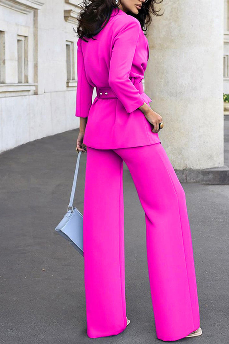 Casual Street Buttons Turn-back Collar Long Sleeve Two Pieces(No Belt)(3 Colors)