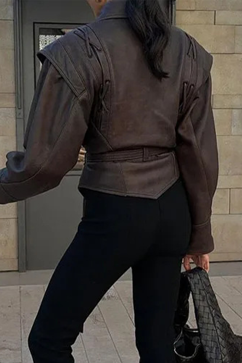 Casual Street Solid Color Lace Up Patchwork Turndown Collar Outerwear