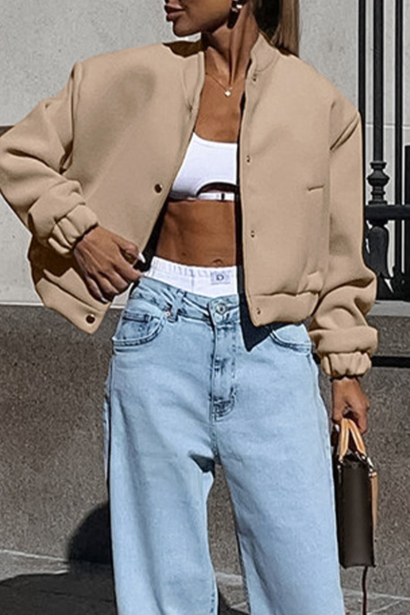 Casual Street Solid Color Pocket Gross Mandarin Collar Outerwear