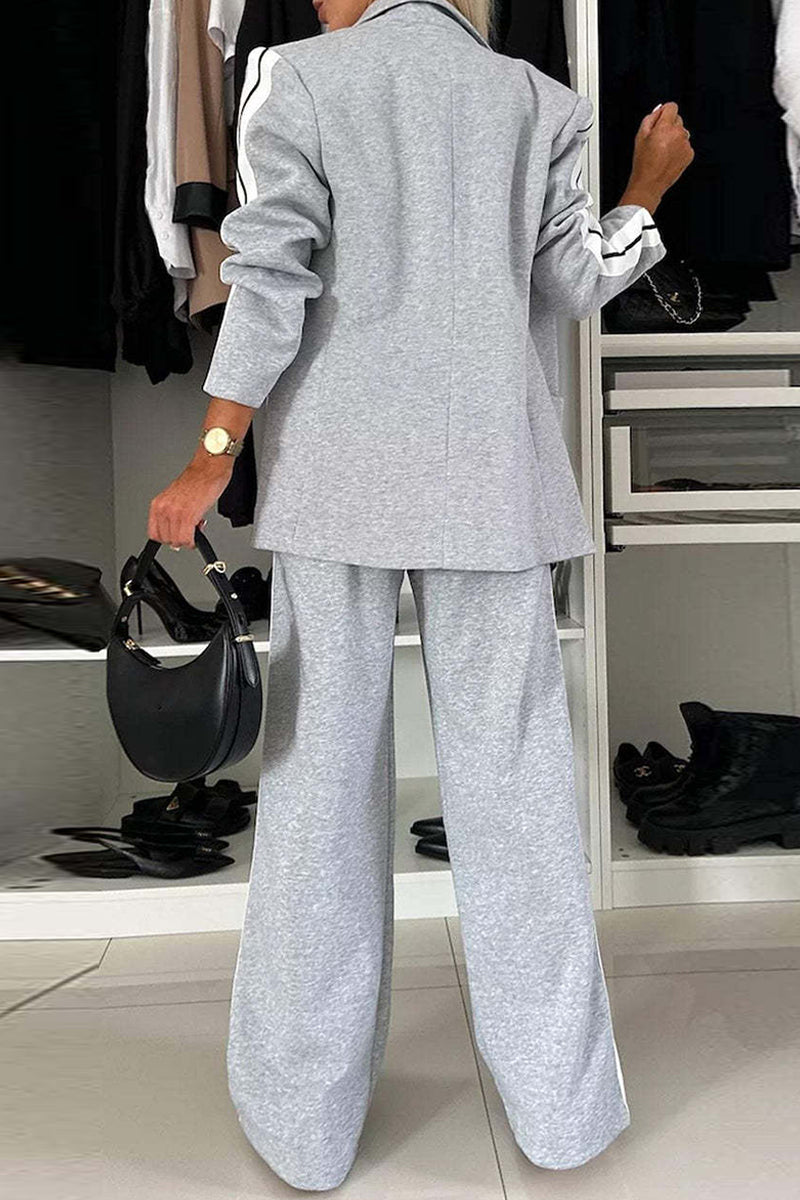 Casual Stripe Patchwork Turn-back Collar Long Sleeve Two Pieces(7 Colors)