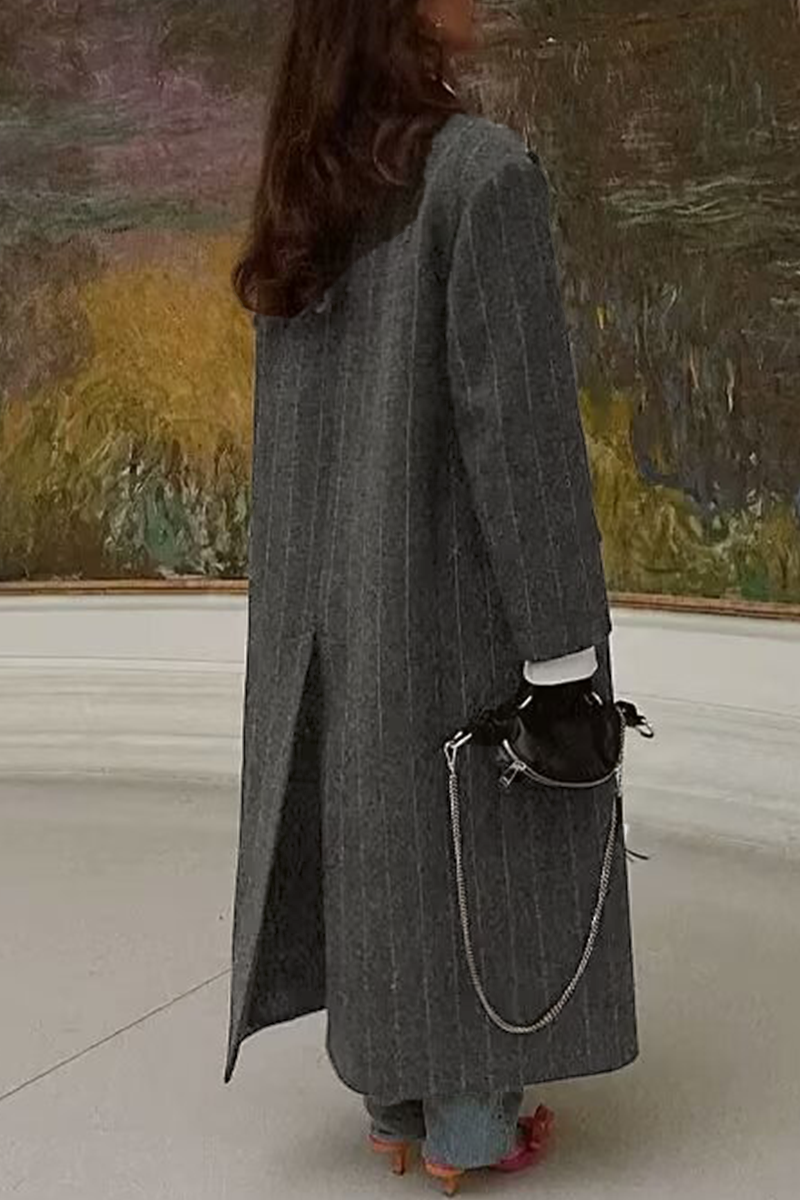 Casual Stripe Pocket Patchwork Turndown Collar Outerwear