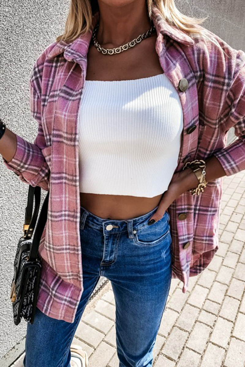 Casual Vintage Plaid Patchwork Buckle Turndown Collar Outerwear(8 colors)