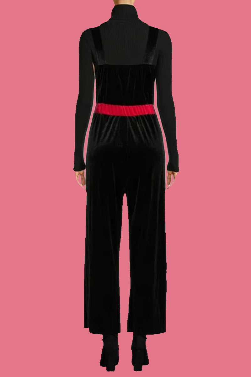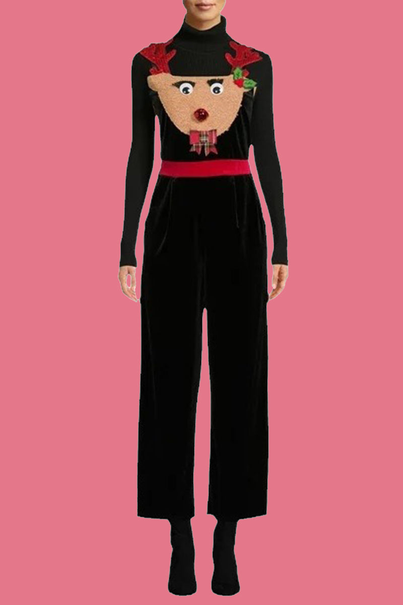 Casual Wapiti Snowflakes Christmas Tree Printed Patchwork Square Collar Loose Jumpsuits