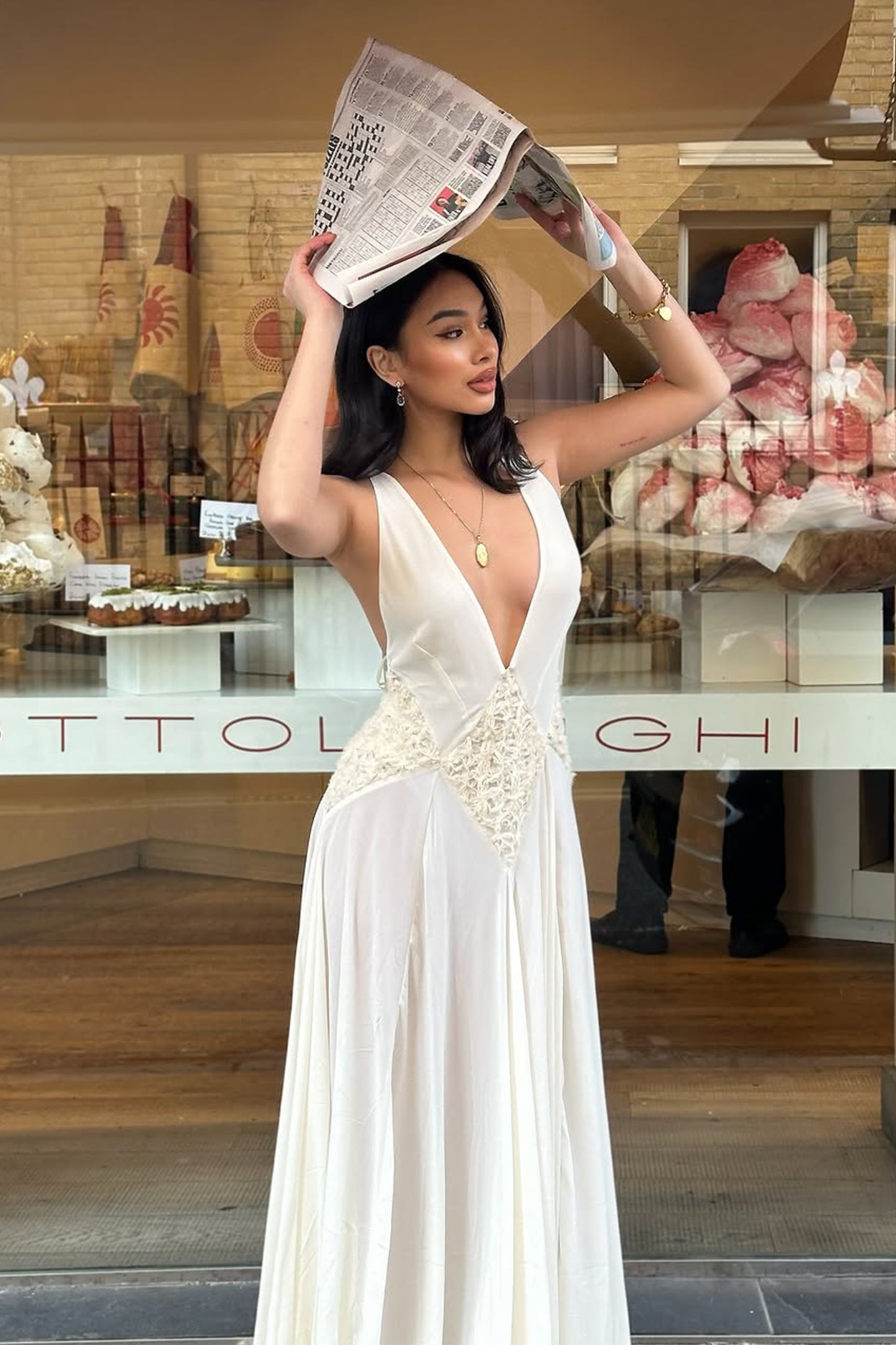 Cecilia Plunge Neck Chiffon Maxi Dress