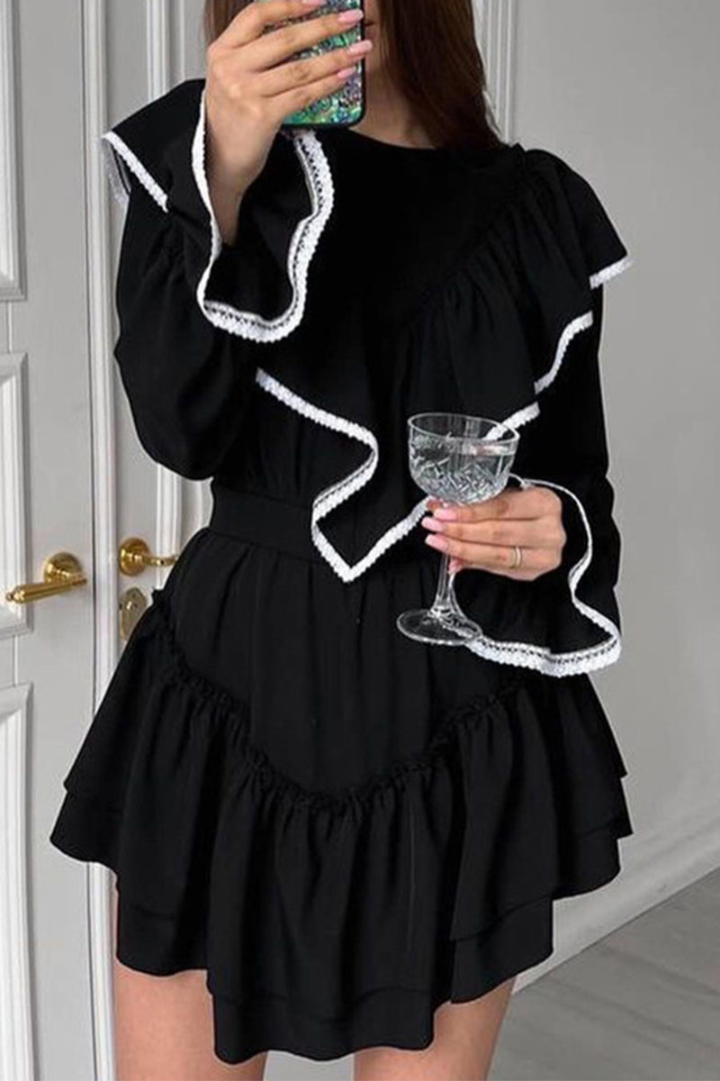 Celebrities Elegant Solid Flounce O Neck A Line Dresses