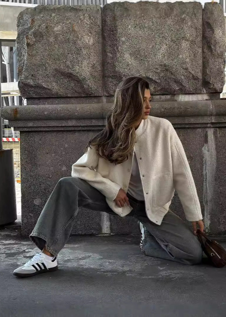 Celeste - Textured Fleece Snap-Button Jacket offers a perfect blend of warmth and minimal elegance. Designed with a soft, teddy-textured fleece, this relaxed-fit jacket features a snap-button front, elasticated hem, and side pockets for a cozy yet structured silhouette. The neutral tone makes it a versatile layering piece, effortlessly complementing jeans, leggings, or casual dresses. Whether for chilly mornings or laid-back weekends, this jacket is a go-to for effortless style and comfort.