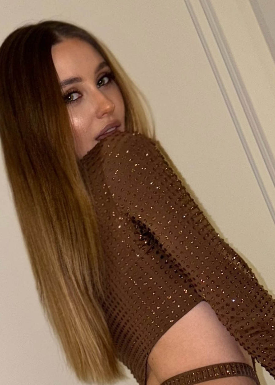 The Celestial Glow Gown is an embodiment of luxury and allure. This full-length dress shimmers with rhinestone embellishments, catching the light with every movement. Designed with a high neckline, long sleeves, and an elegant draped silhouette, it features an asymmetric cutout that accentuates the waist, adding a bold yet sophisticated touch. The ruched hip detail and fluid skirt create a statuesque fit, perfect for gala nights, red carpet events, or exclusive soirées. Complete the look with metallic heels and statement earrings for a show-stopping entrance.