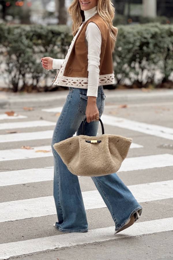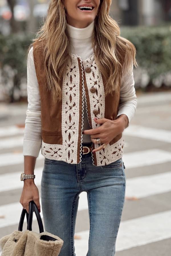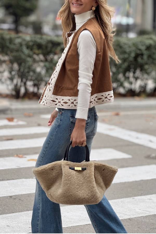 Chaleco corto en color camel.