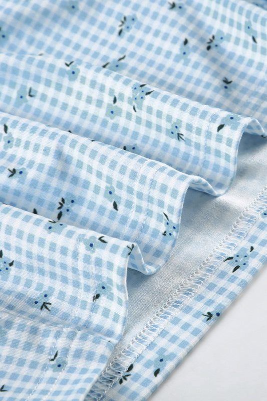 Check Floral Cami Top Elastic Shorts Loungewear Two Piece Set