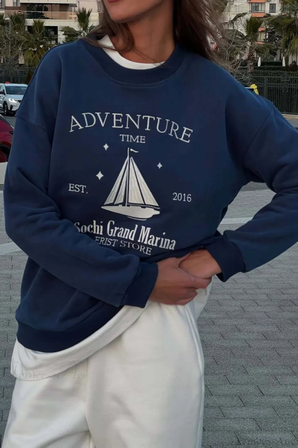 Chic Printed Crew Neck Oversized Long Sleeve Sweatshirt
