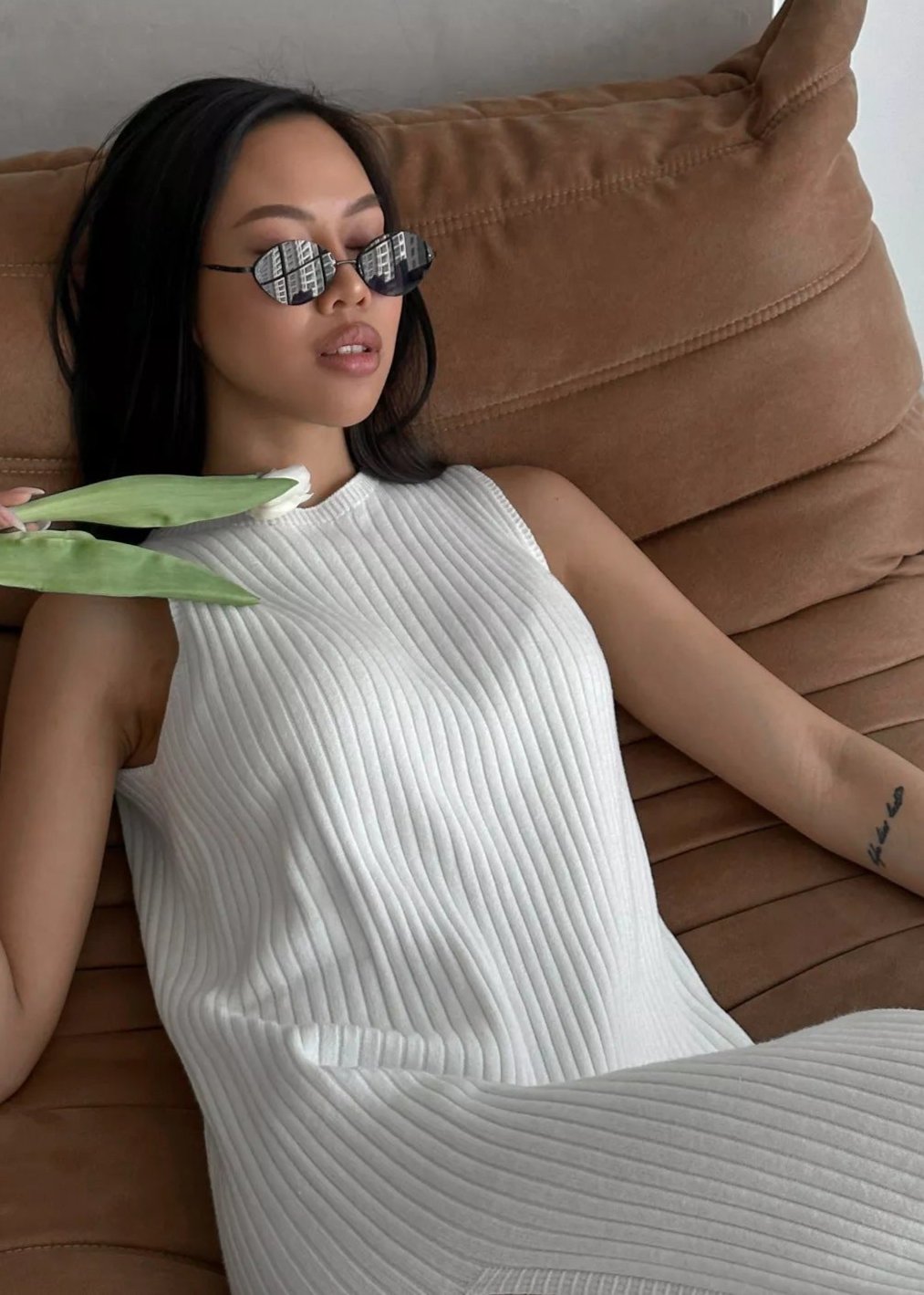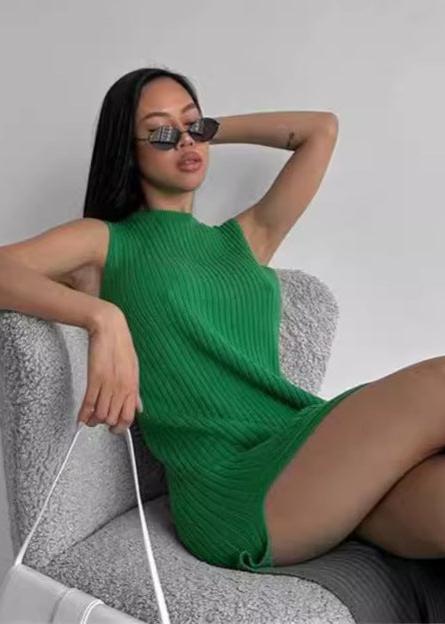 Embrace effortless style with the Chic Sleeveless Ribbed Maxi Dress, a versatile addition to your wardrobe. Crafted from soft, breathable fabric, this dress features a vibrant green color that makes a bold statement. The ribbed texture adds a modern touch, while the side slit provides a hint of flirtation and ease of movement. Perfect for casual outings or dressed up for brunch, this dress can be paired with sandals for a laid-back vibe or heels for a more polished look. Add a chic handbag to complete your ensemble and step out in confidence.