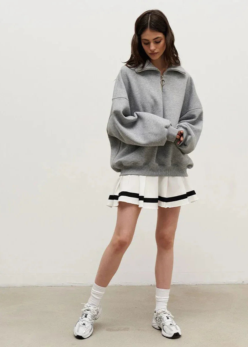 Elevate your casual wardrobe with our Chic Zip-Up Casual Navy Sweater. Crafted from soft, high-quality fabric, this sweater features a stylish high collar and a convenient half-zip design for easy wear. The loose fit ensures maximum comfort, making it perfect for layering over your favorite tops or dresses. Whether you're running errands or relaxing at home, this versatile piece will keep you cozy and chic. Pair it with joggers or a flared skirt for a look that's effortlessly stylish.