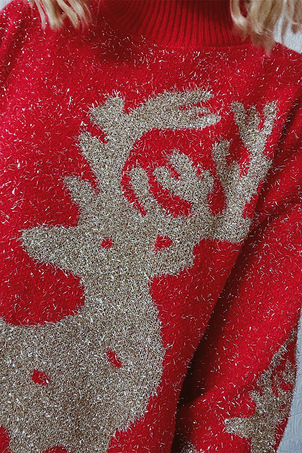 Christmas Pattern Knitted Crew Neck Long Sleeved Sweater