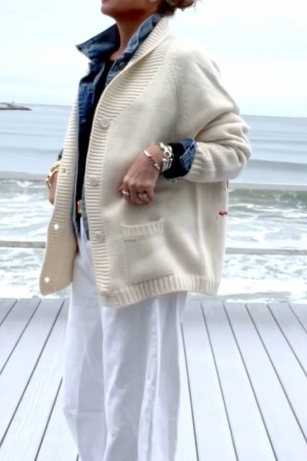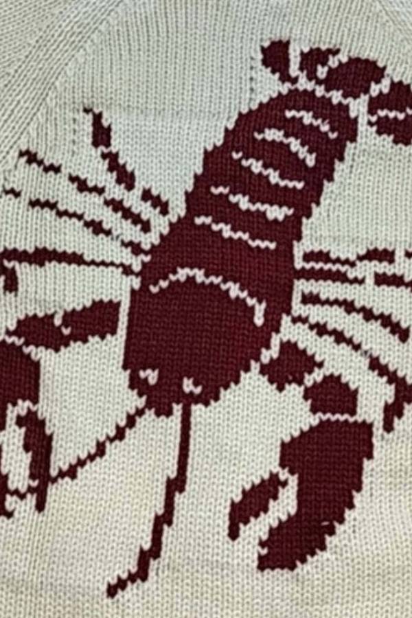 Chunky and Unique Knit Contrast Color Lobster Button Pocket Loose Cardigan