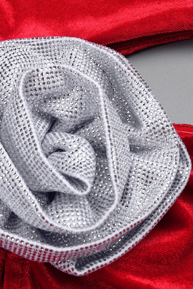 Diamante Rose, Cut-out Halterneck, Cropped Bodysuit with Skirt, High Slit, Backless with Elastic Strap, Two-piece Dress Set.