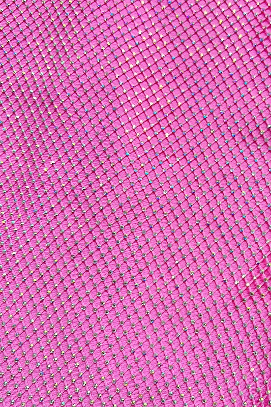 Sparkle midi dress with an open neckline and shoulders, complemented by feathers. Dress has a high thigh slit for a contemporary twist. Crafted from our classic mesh translucent fabric covered in rhinestones.