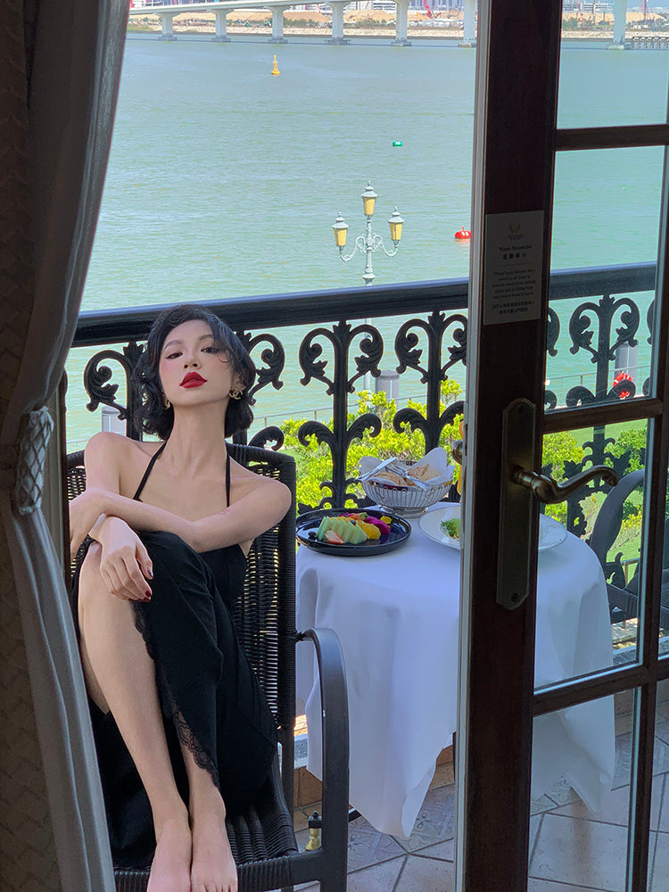 - Classic Black Halter Lace Mermaid Maxi Dress - Sexy V-Neck Evening Gown