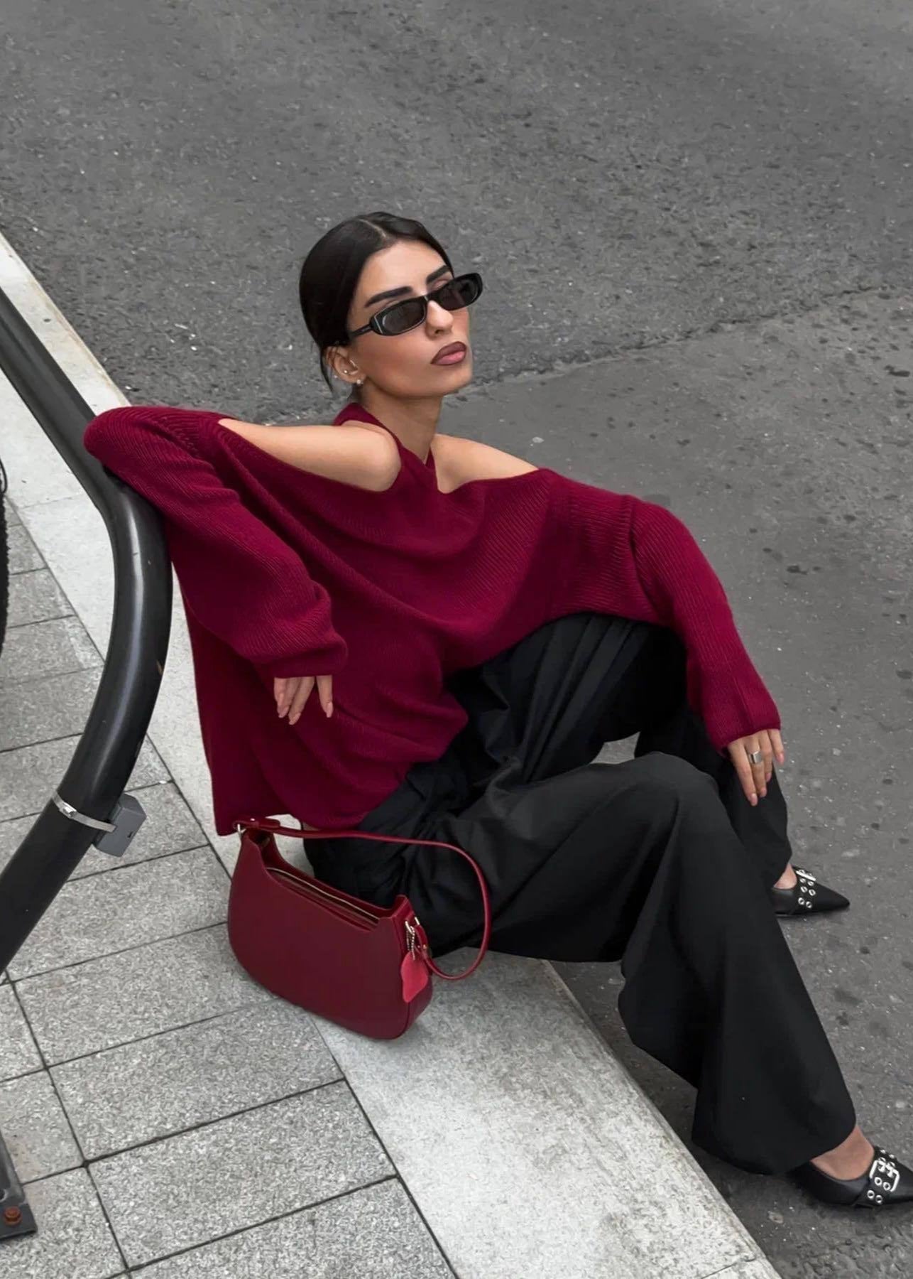 Cold-Shoulder Knit Sweater – a modern twist on cozy elegance. Designed with chic exposed shoulders, this relaxed-fit sweater brings effortless style to any outfit. The soft, ribbed knit fabric provides warmth while maintaining breathability, making it perfect for layering in cooler weather. A versatile piece that pairs seamlessly with wide-leg trousers, denim, or skirts for a contemporary, fashion-forward look.