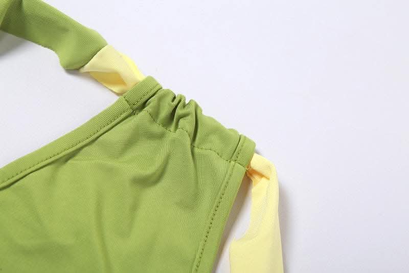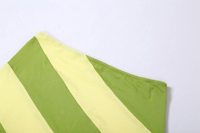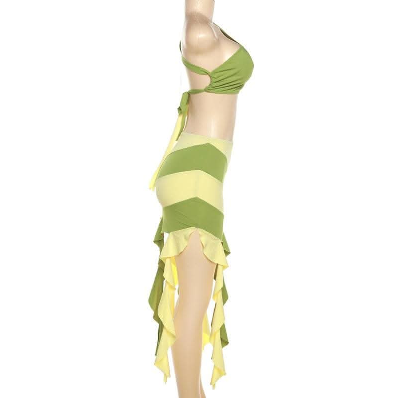 Contrast irregular one shoulder backless ruffle mini skirt set-final-sale
