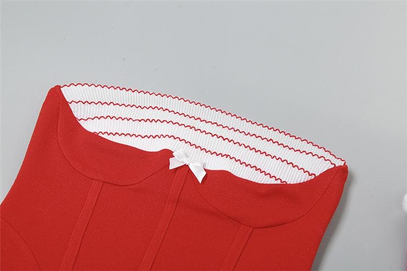 Contrast patchwork gloves fluffy ruffle backless tube mini dress-final-sale