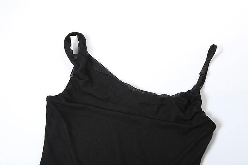 Cowl neck mesh ruffle slit irregular solid cami maxi dress-final-sale