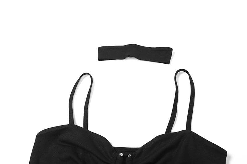 Cowl neck solid long sleeve ruched choker 2 piece cami top