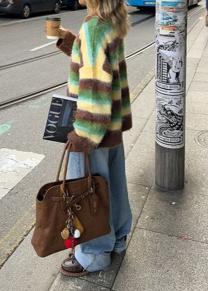 The Cozy Stripes Mohair Sweater is your ultimate go-to for casual comfort with a touch of flair. Featuring soft, vibrant stripes, this oversized sweater is made from a premium mohair blend that feels luxuriously warm and lightweight. The relaxed fit and dropped shoulders make it perfect for layering, while the bold color palette adds a playful pop to any outfit.