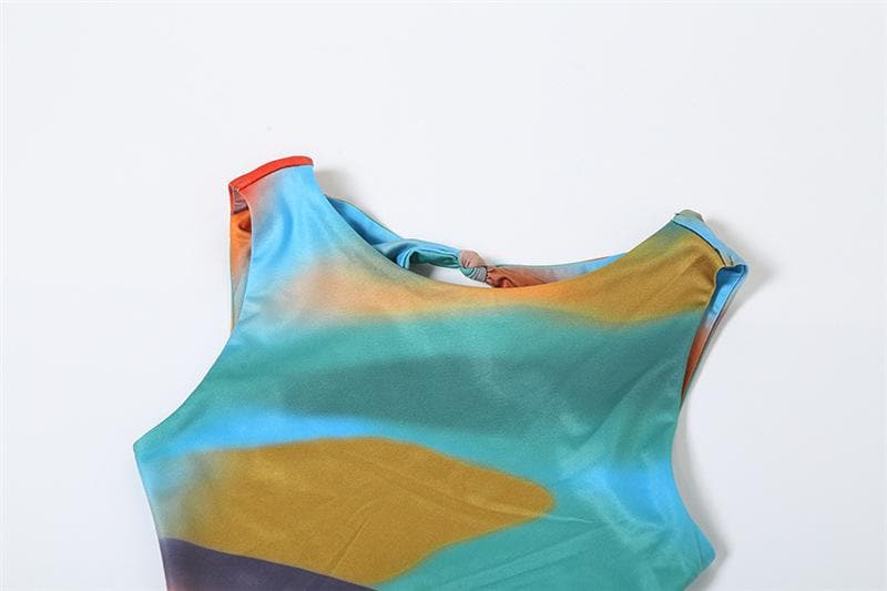 Crewneck hollow out backless ruched tank cut out maxi skirt