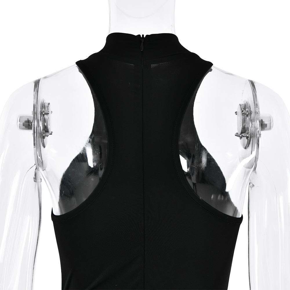 Crewneck ruched solid hollow out tank cut out maxi dress