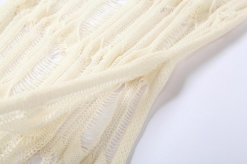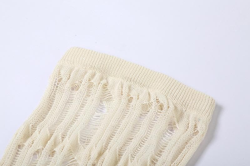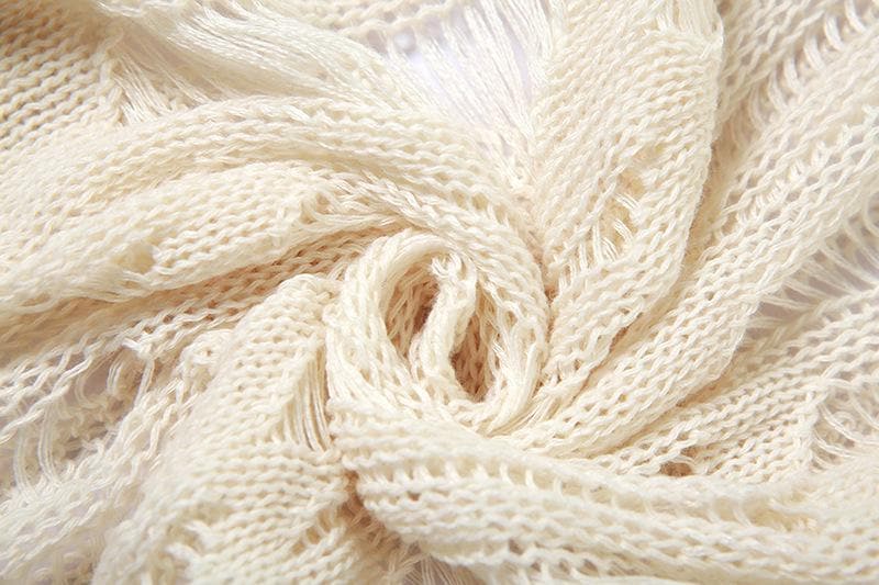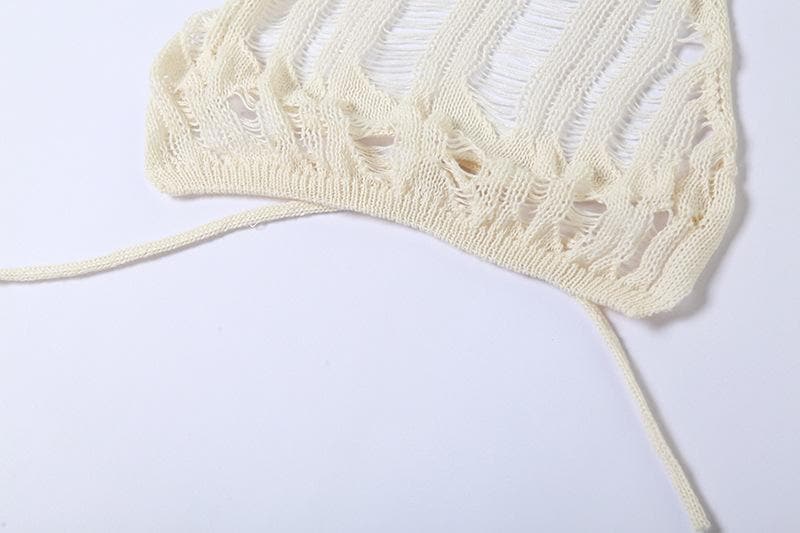 Crochet solid halter self tie see through slit midi skirt set-final-sale
