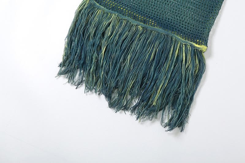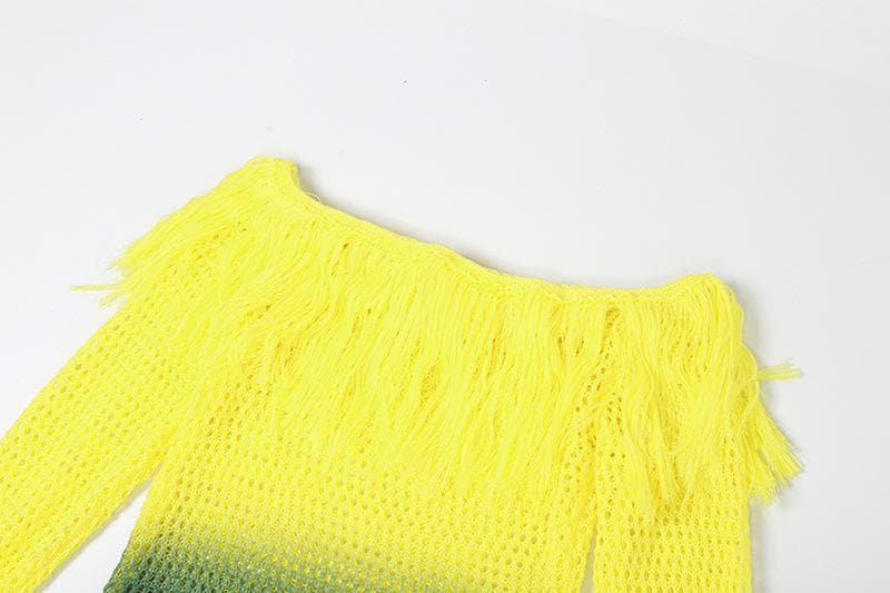 Crochet tassels off shoulder contrast long sleeve maxi dress-final-sale