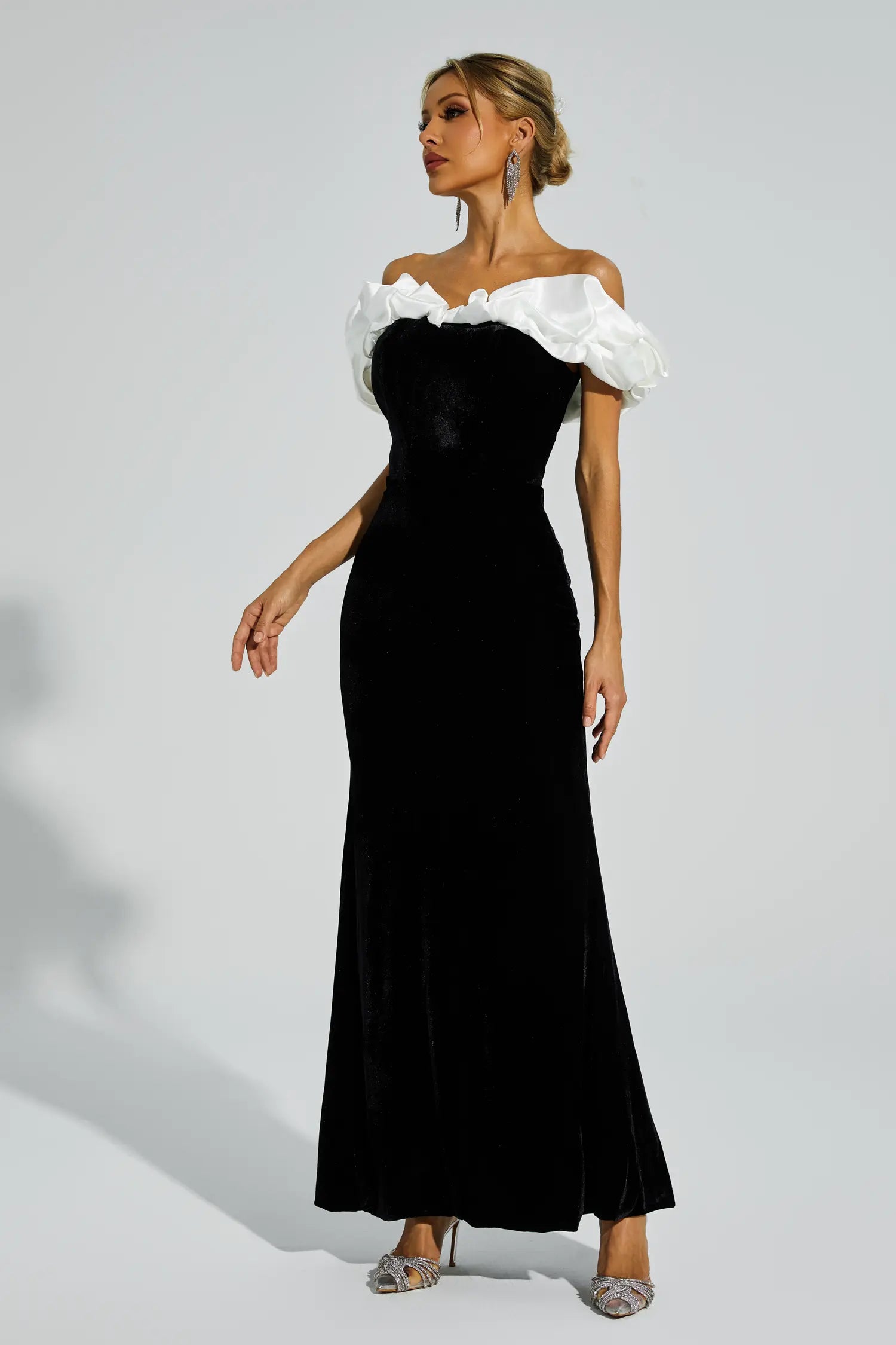 The Croft Black One Shoulder Mermaid Maxi Dress exudes sophistication and elegance. This sleek evening gown features a black hue, highlighting a stylish one-shoulder design. The mermaid cut enhances its high-end allure, making it perfect for formal occasions and adult ceremonies. Make a statement at any special event with this stunning black dress.