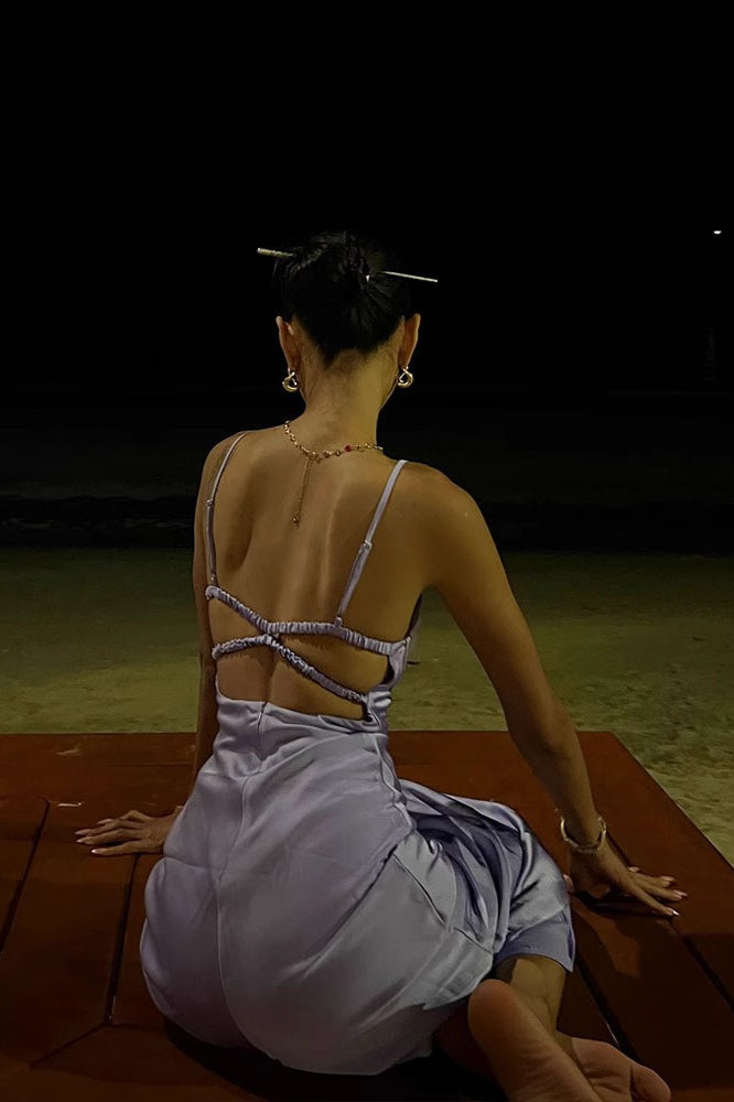 Pearl Satin Slim Fit Backless Cami Elegant Maxi Dress