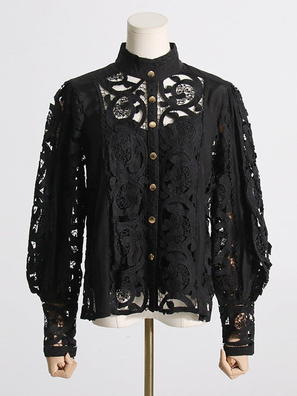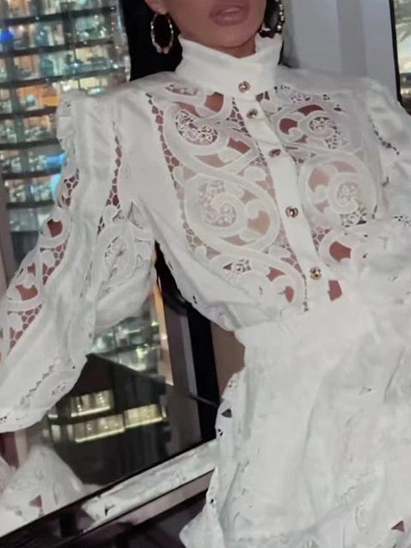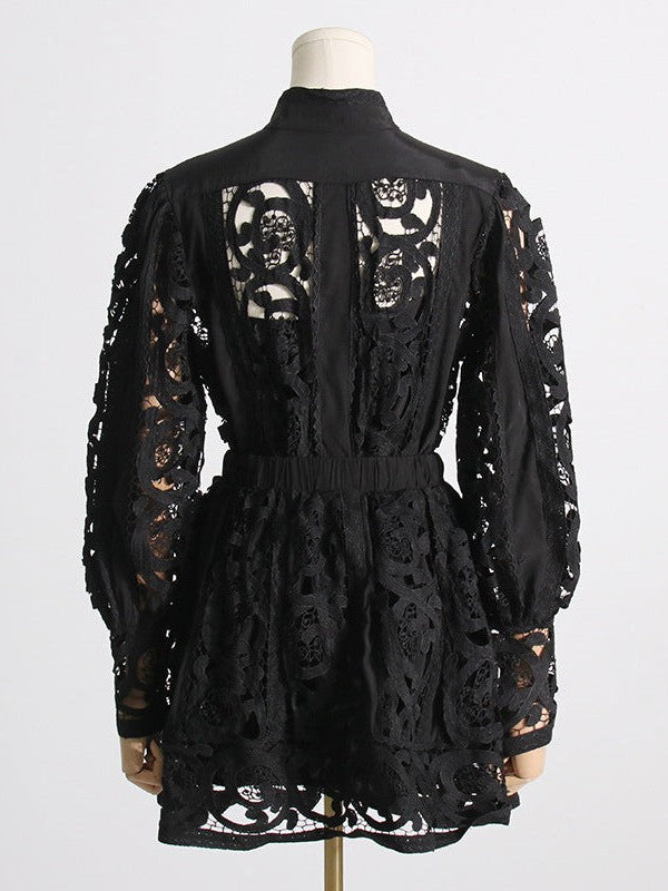 French Cutout Hollow Out Crochet Shirt Top & Shorts Coord Set