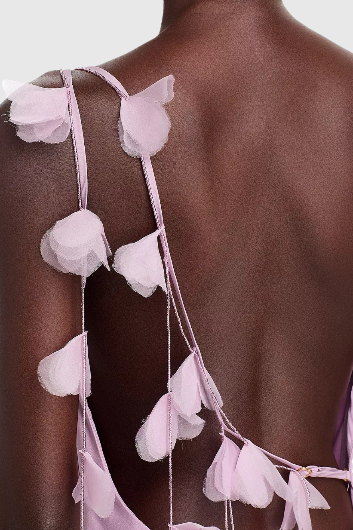 Dedrik Floral Ribbon Satin Open Back Maxi Dress