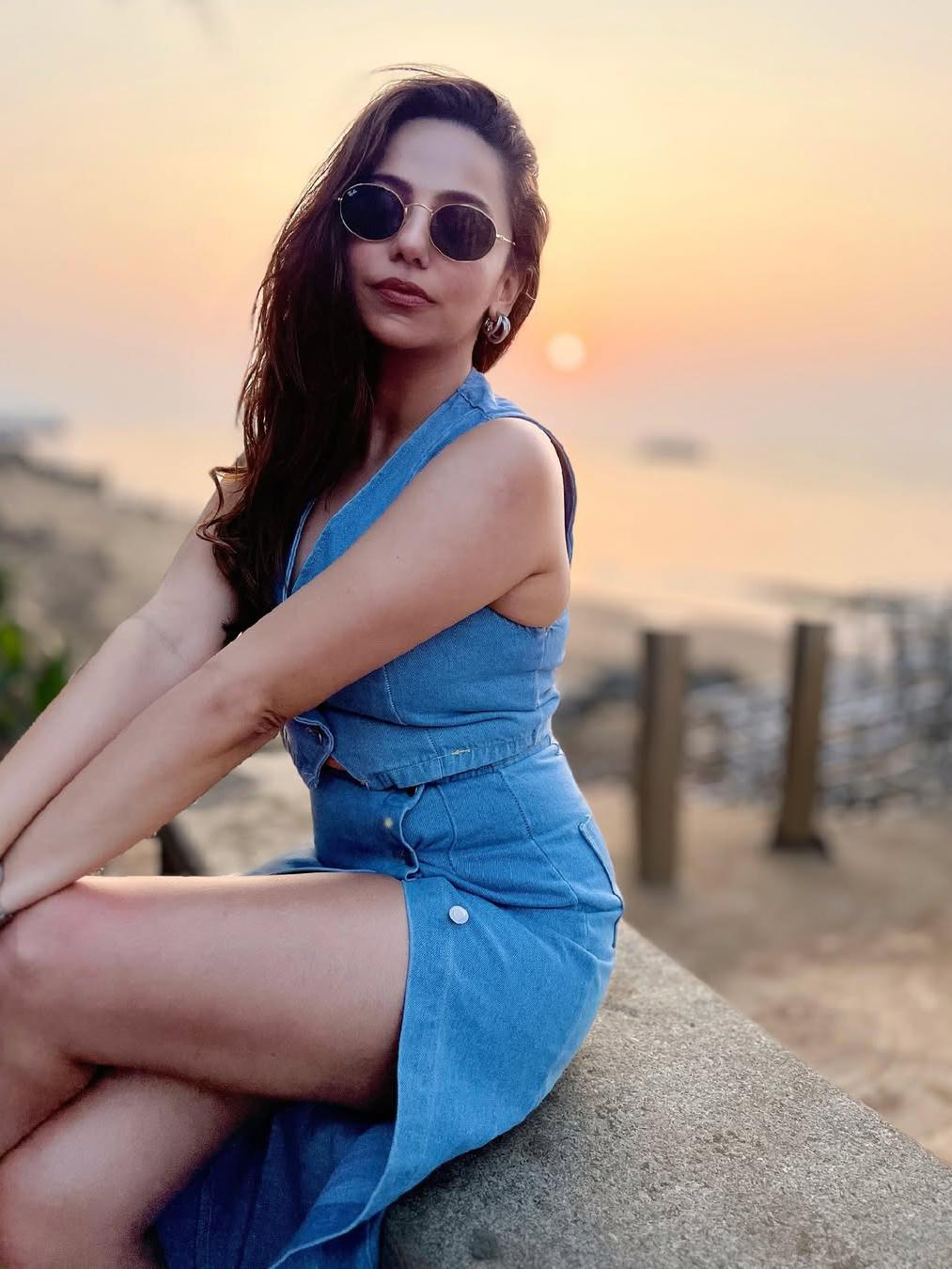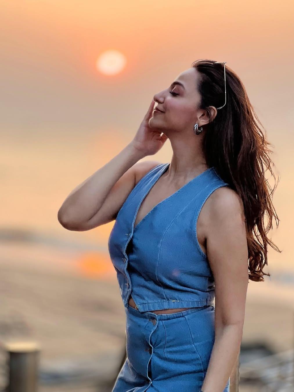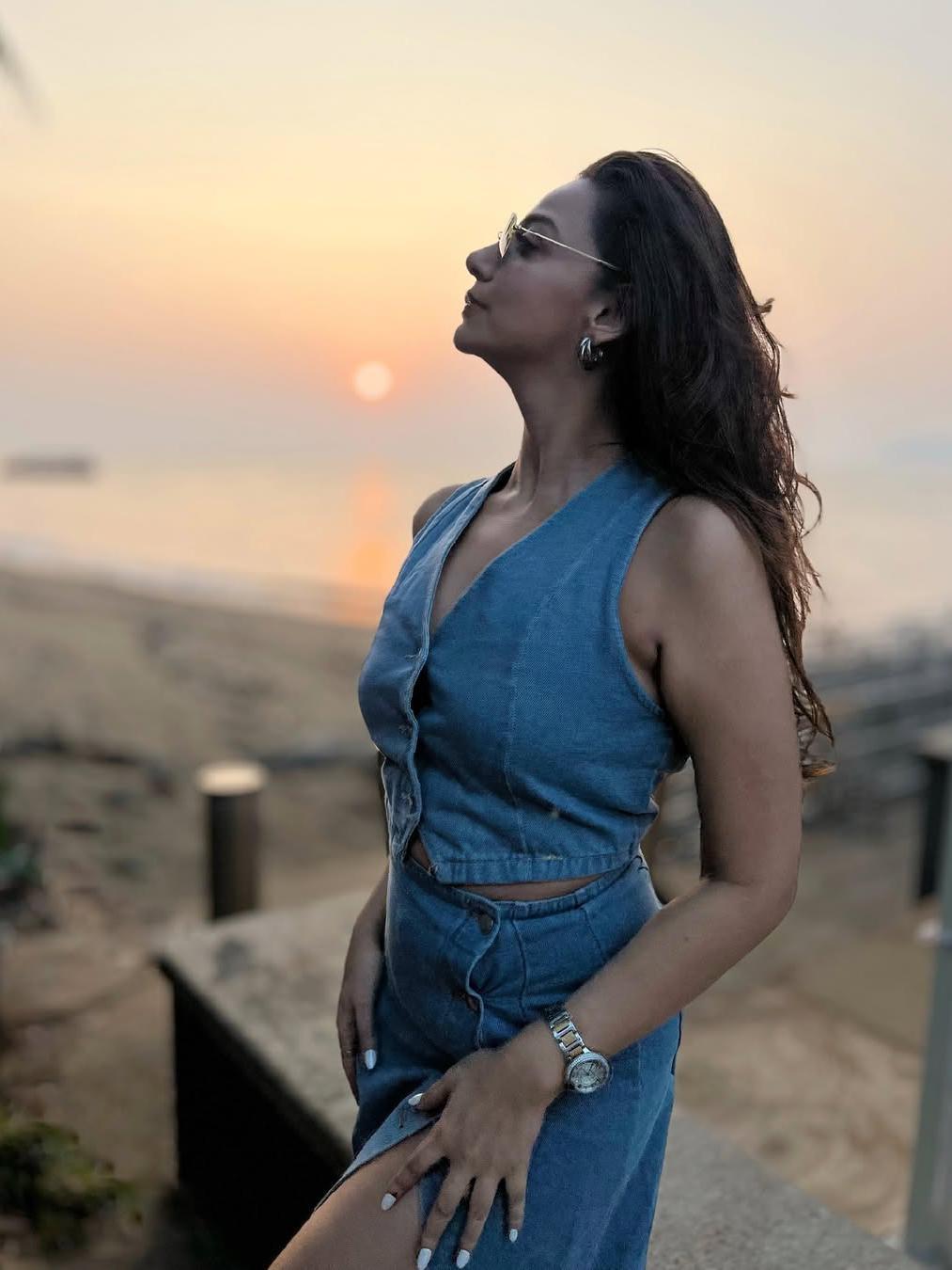 Denim Vest Waist Coat & Slit Skirt Coord Set