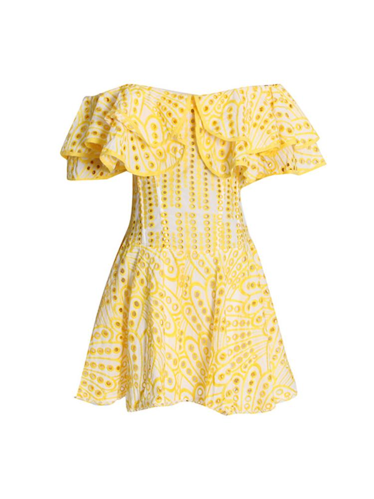 Dolly Embroidered Lace Ruffle Bodice Flare Mini Dress