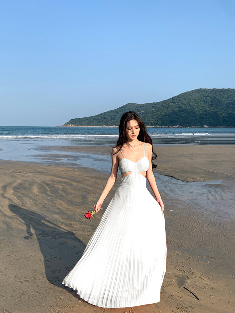 - Dopamine Yellow Spaghetti Strap Maxi Dress Sexy Backless Vacation Outfit