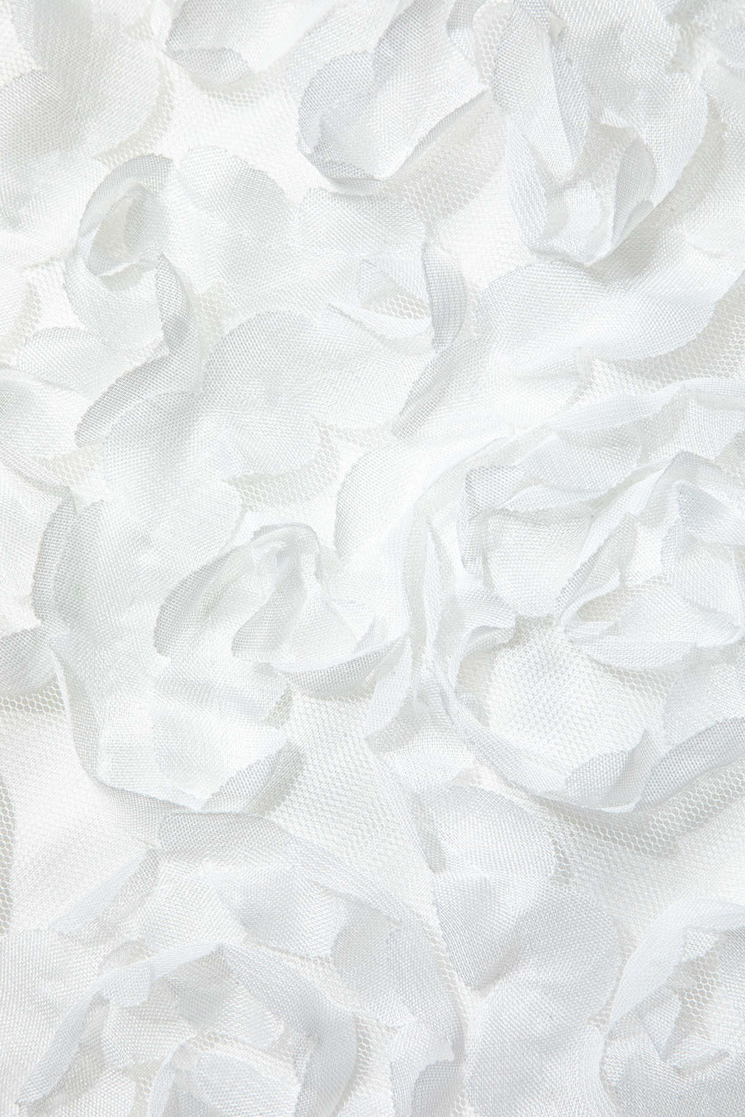 Straight Neckline, Adjustable Wide Straps, Hand-applied Floral Tulle Appliques, Flattering Skirt, Mini Length.