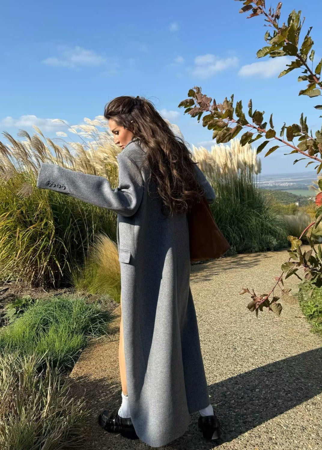 Ideal for layering over knitwear or dresses, making it a versatile staple for autumn and winter wardrobes.