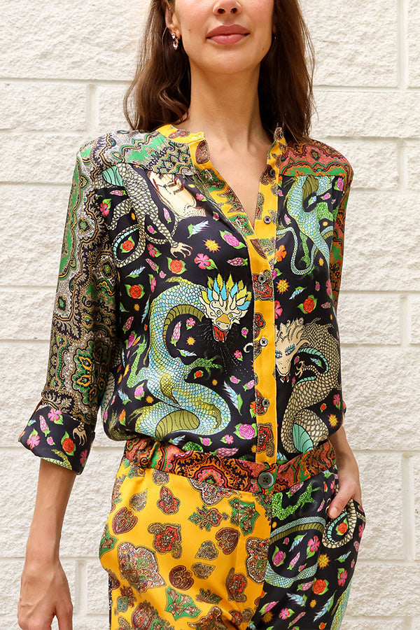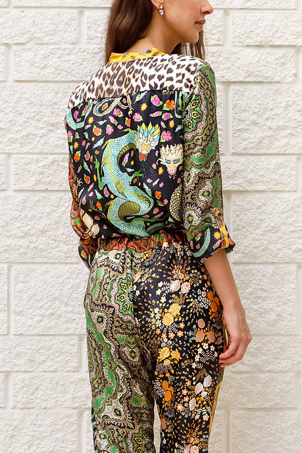 Dragon of My Eye Paisley Printed Patchwork Casual Blouse