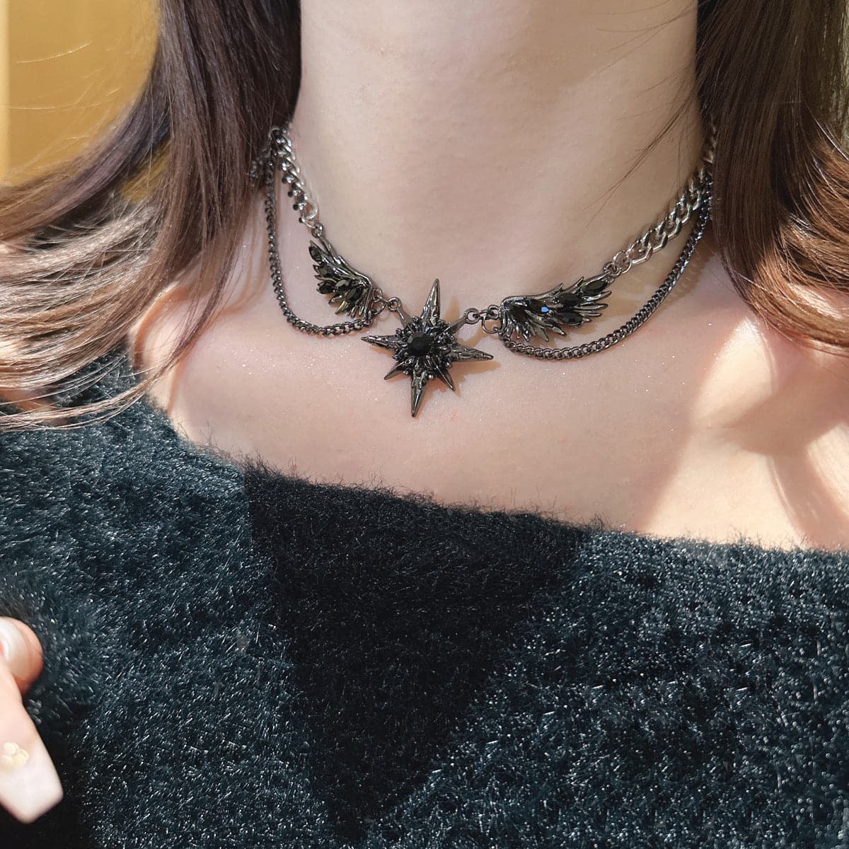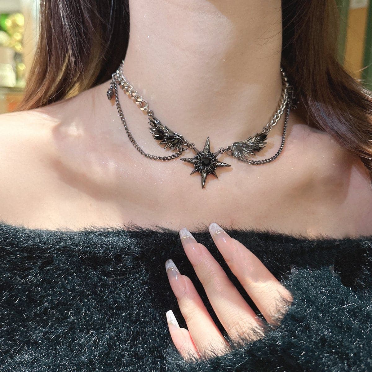 Eight awn star decor layered choker necklace