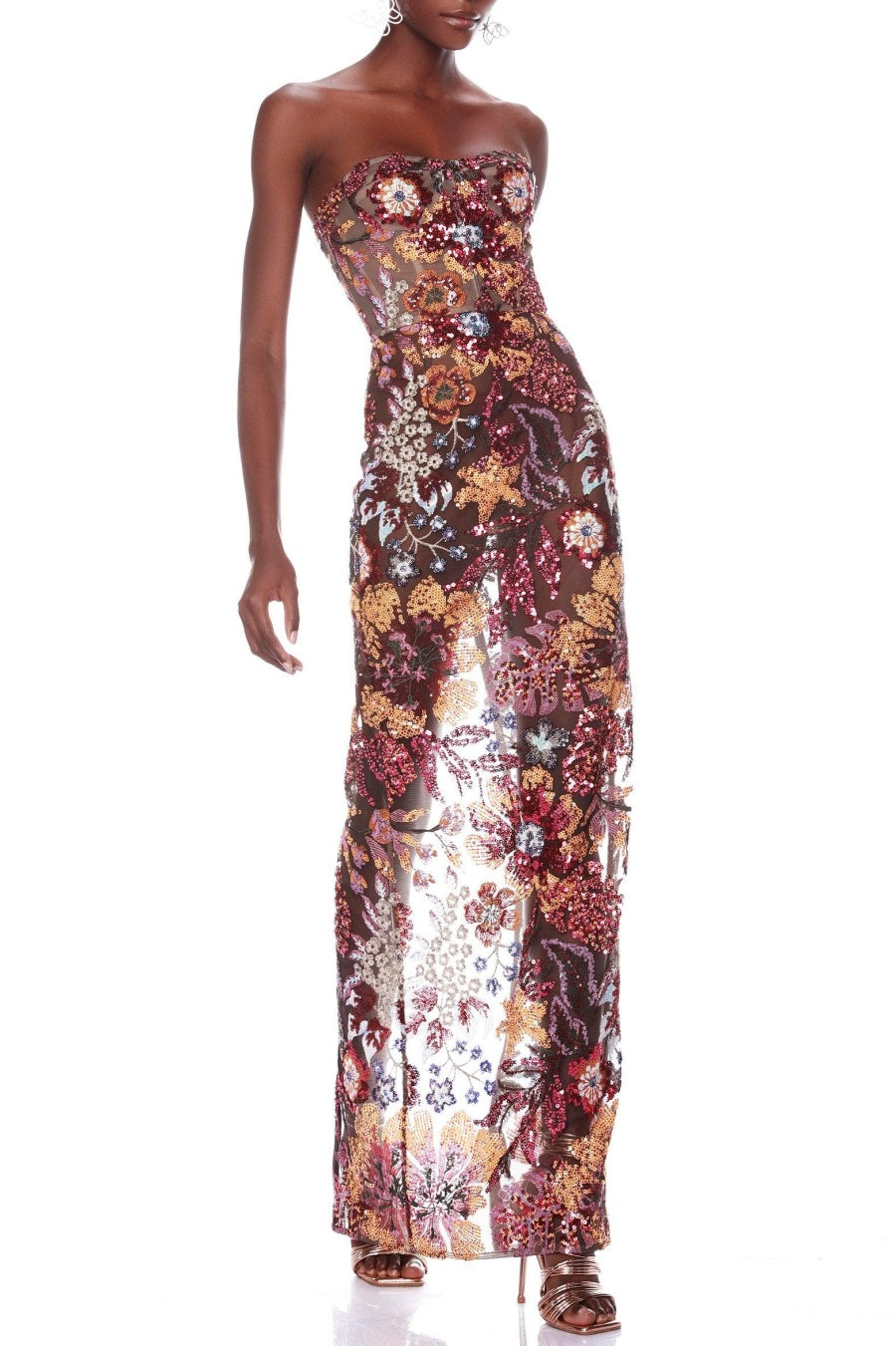 Elara Floral Sequin Embroidered Strapless Maxi Dress - Red