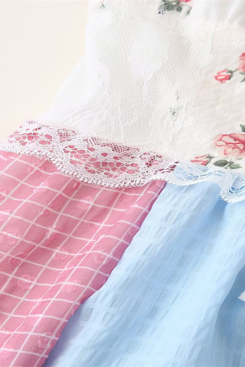 Elegant Floral Print Lace Draw String Backless Contrast Halter Long Dresses