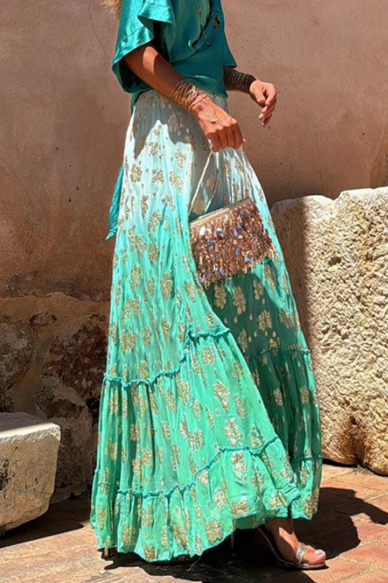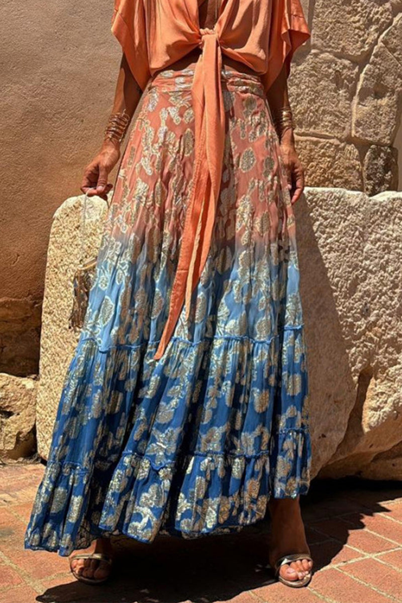Elegant Print Flowers Flounce Contrast Loose High Waist Type A Full Print Bottoms