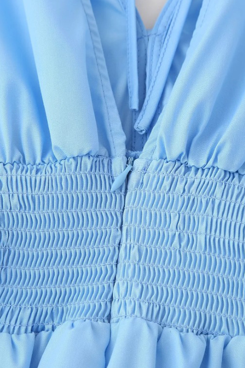 Elegant Solid Color Draw String Flower Shape V Neck Waist Skirt Dresses