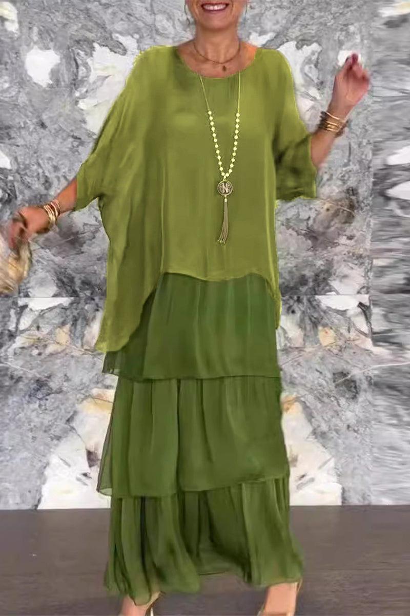 Elegant Solid Flounce Contrast O Neck Irregular Dresses