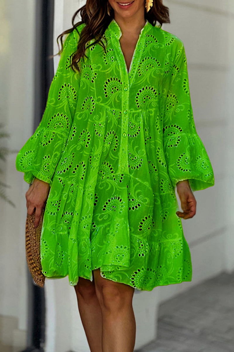 Elegant Solid Lace Hollowed Out V Neck A Line Dresses(5 Colors)
